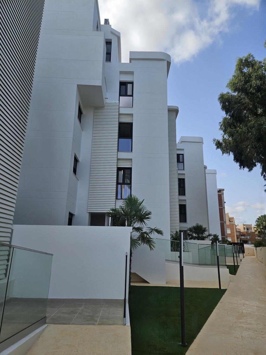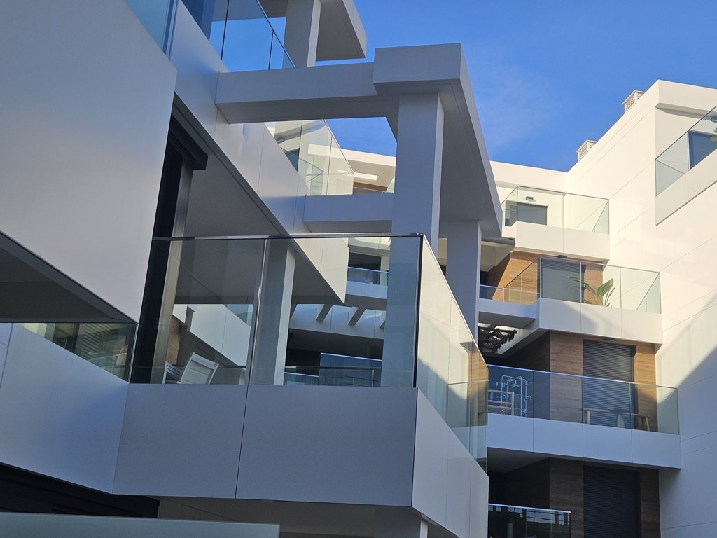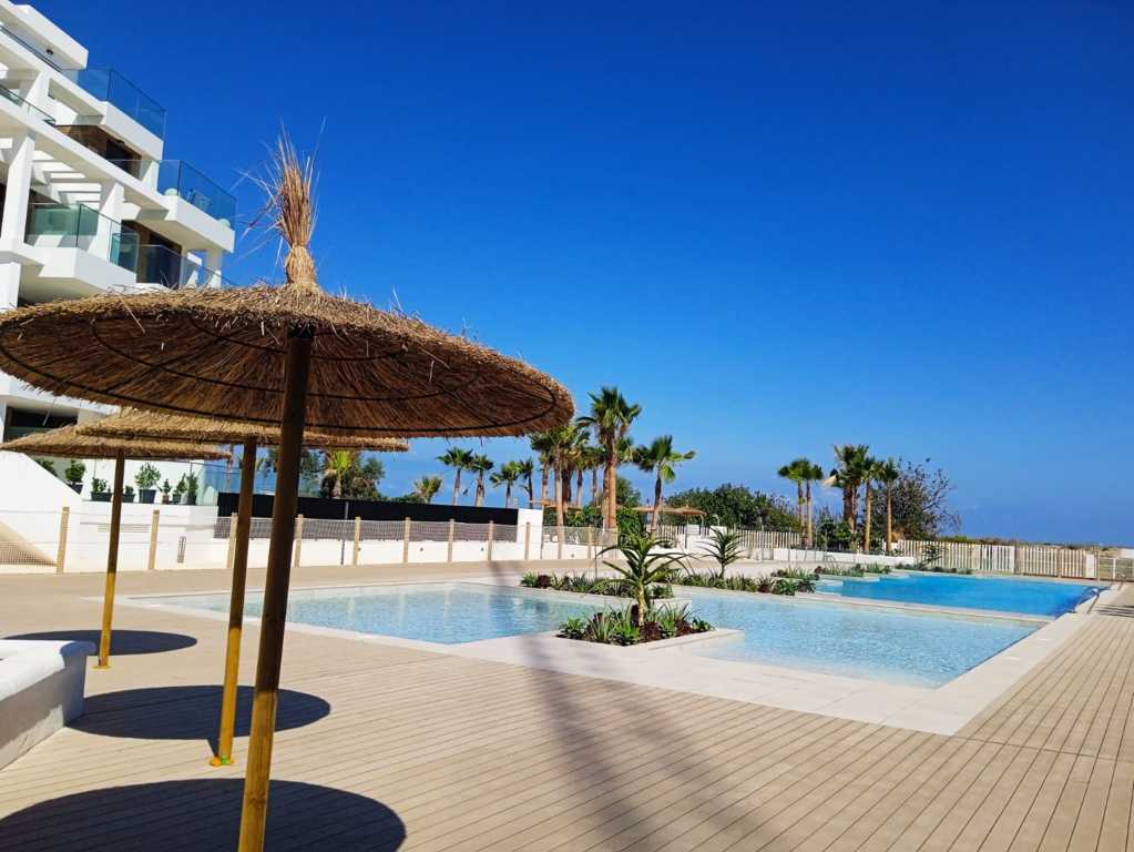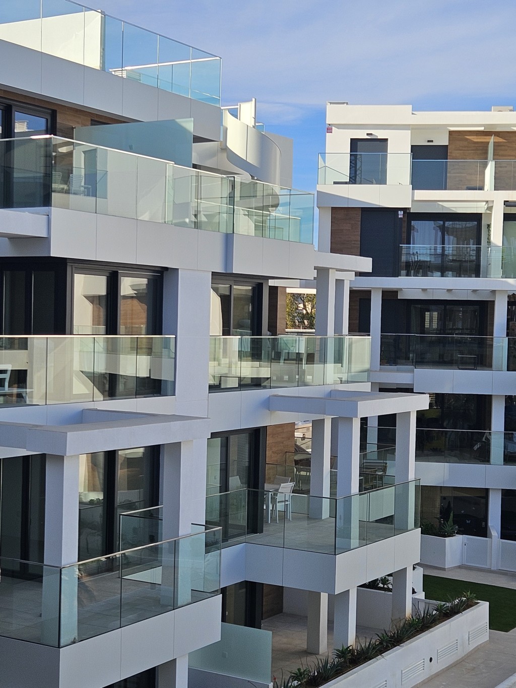 Las viviendas están dotadas con amplias terrazas con barandillas acristaladas y envidiables vistas hacia el mar Mediterráneo. Además, las plantas bajas en los extremos de los bloques disponen de jardines privados.