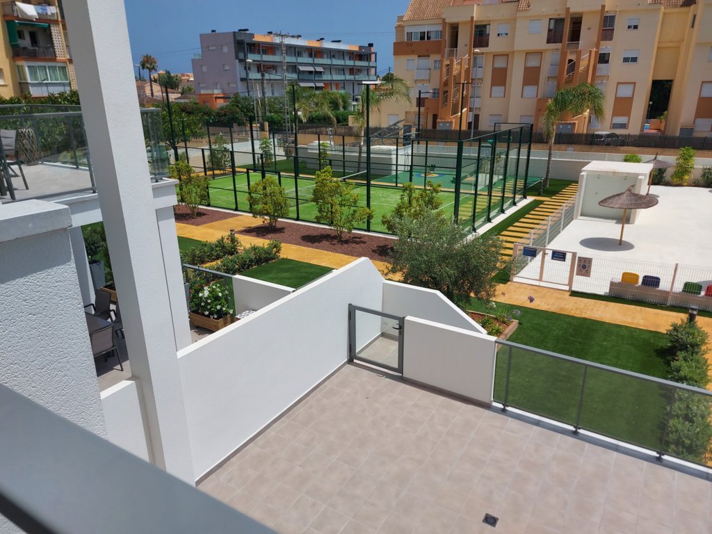 Todas las viviendas disponen de grandes terrazas con vistas a las zonas comunes de la urbanización. Las plantas bajas cuentan con terrazas de mayores dimensiones o jardines de uso privado y los áticos tienen acceso a los solariums privativos situados en la planta de cubiertas